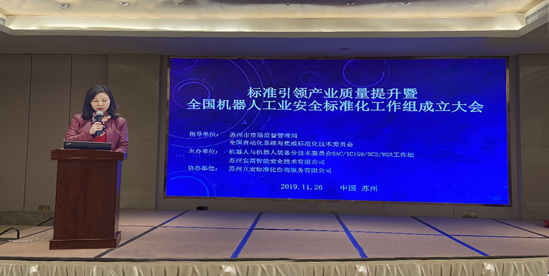 會(huì)議主題:標(biāo)準(zhǔn)引領(lǐng)產(chǎn)業(yè)質(zhì)量提升暨全國(guó)機(jī)器人工業(yè)安全標(biāo)準(zhǔn)化工作組成立大會(huì),大會(huì)由蘇州市市場(chǎng)監(jiān)督管理局標(biāo)準(zhǔn)管理處副處長(zhǎng)楊晶晶主持。蘇州安高智能科技有限公司作為工作組組長(zhǎng)單位